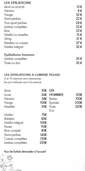 Très attachée aux traditions de l'esthétique nous vous proposons des soins de grandes qualités et utilisons les produits "MySpa" et "Ella Baché",