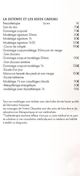 *Les massages de l’institut Cléopatre sont des soins de bien-être et de relaxation, non thérapeutiques et non médicalisés.